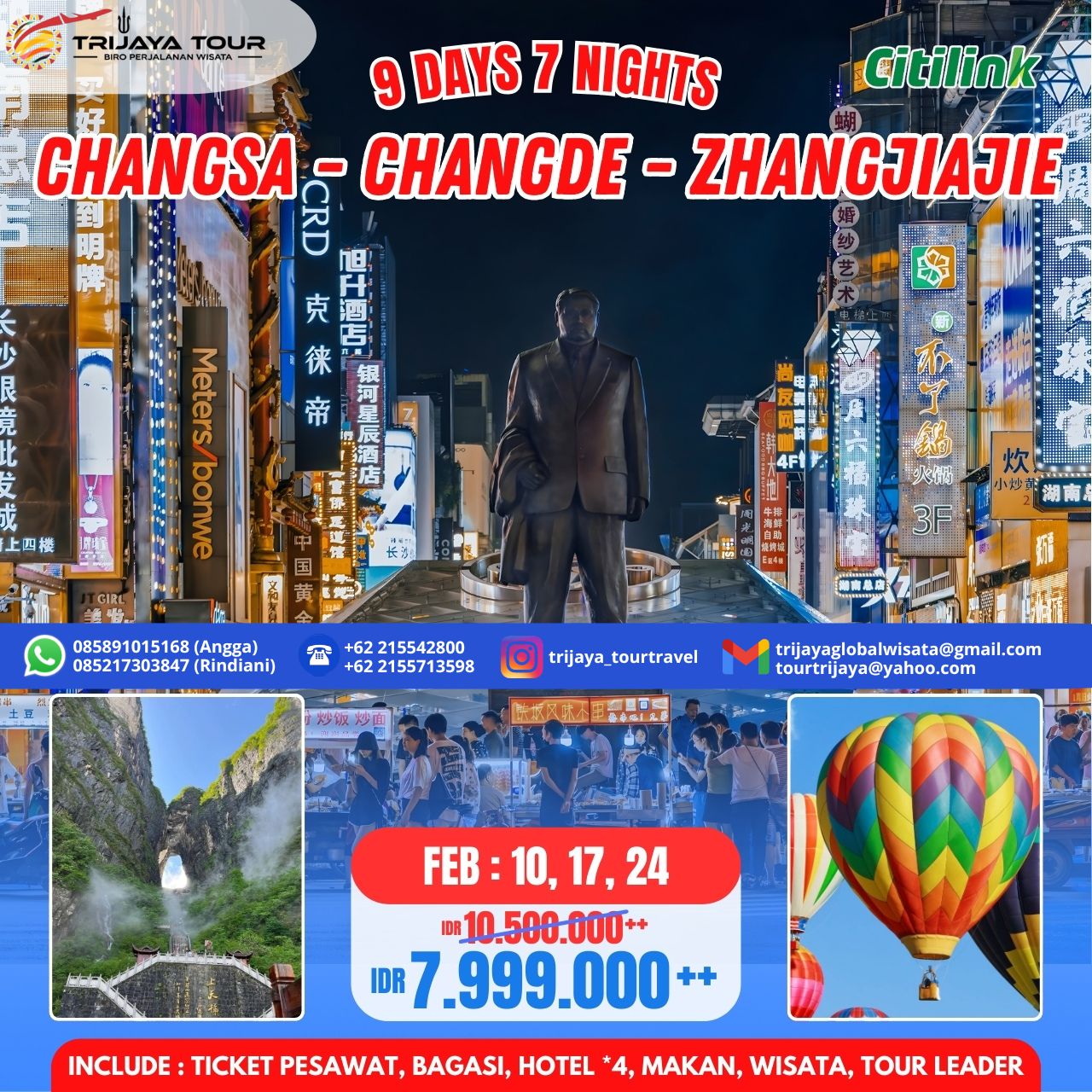 9Hari China CHANGSHA - CHANGDE - FENGHUANG -ZHANGJIAJIE