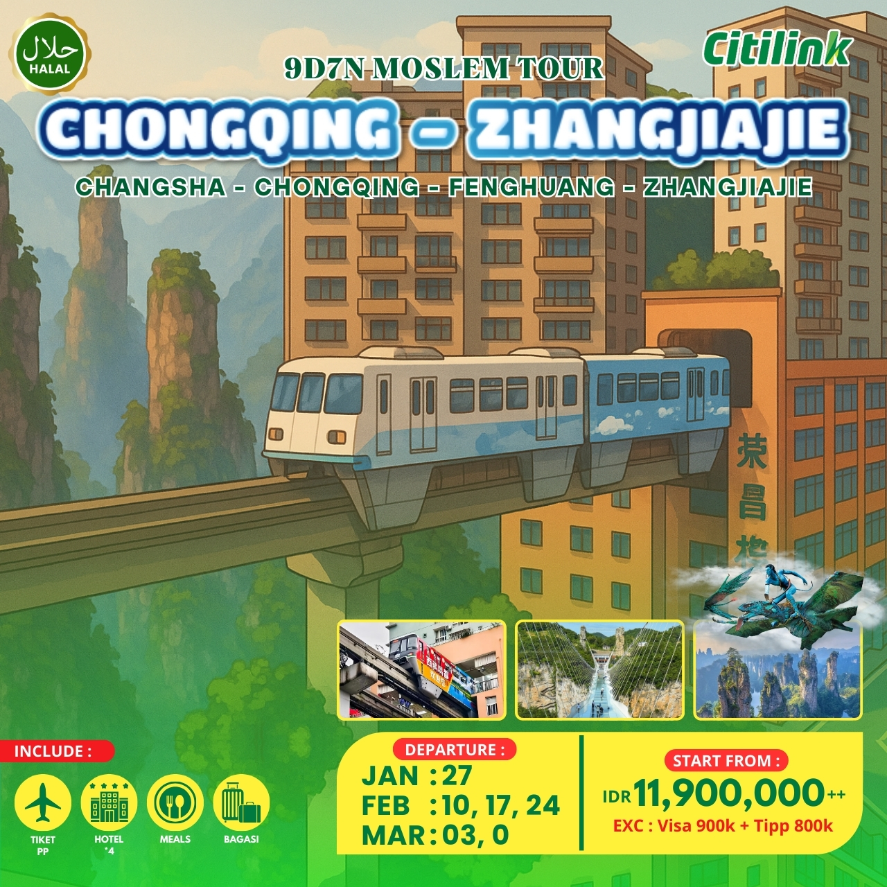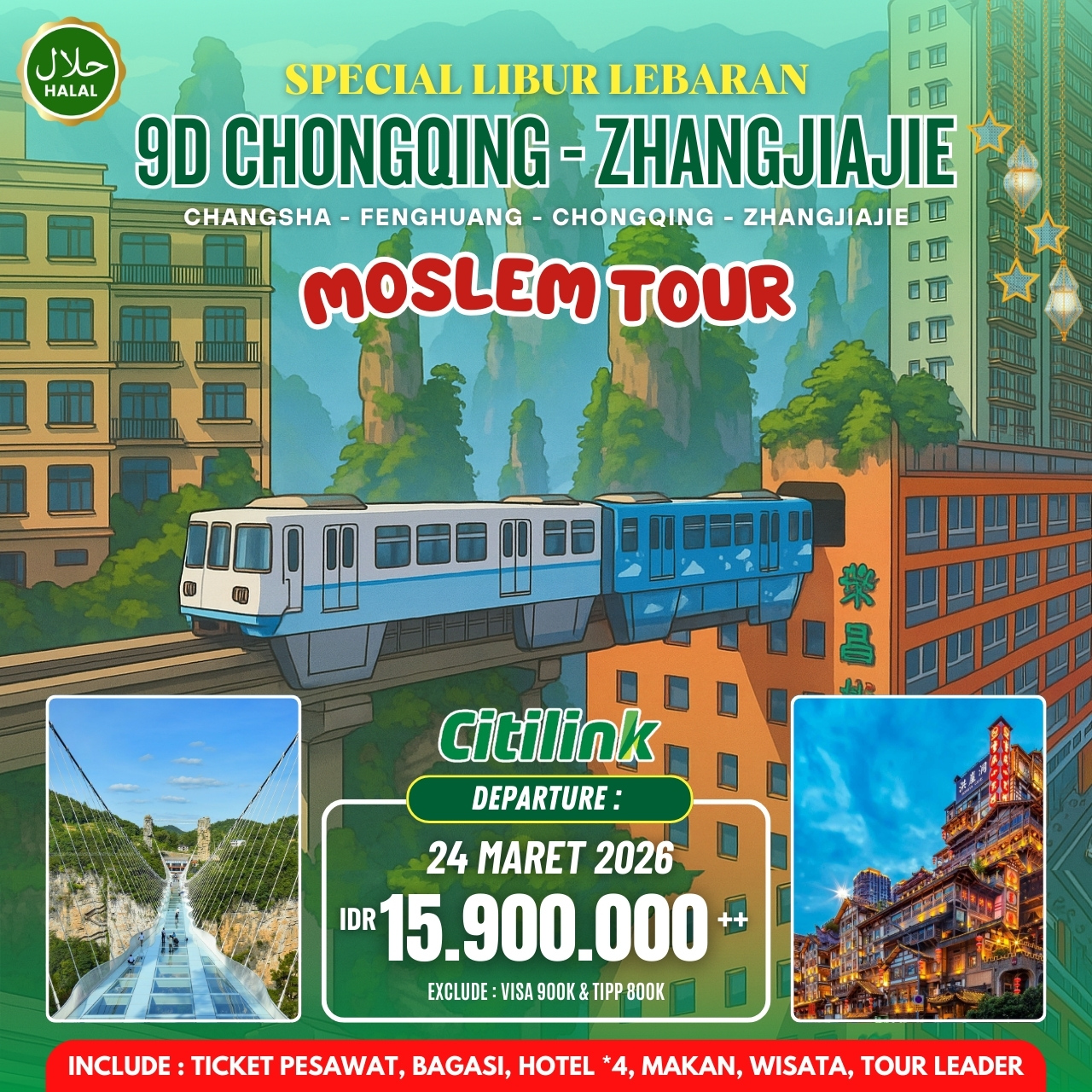 Lebaran 2026 - Muslim Tour China Chongqing Zhangjiajie