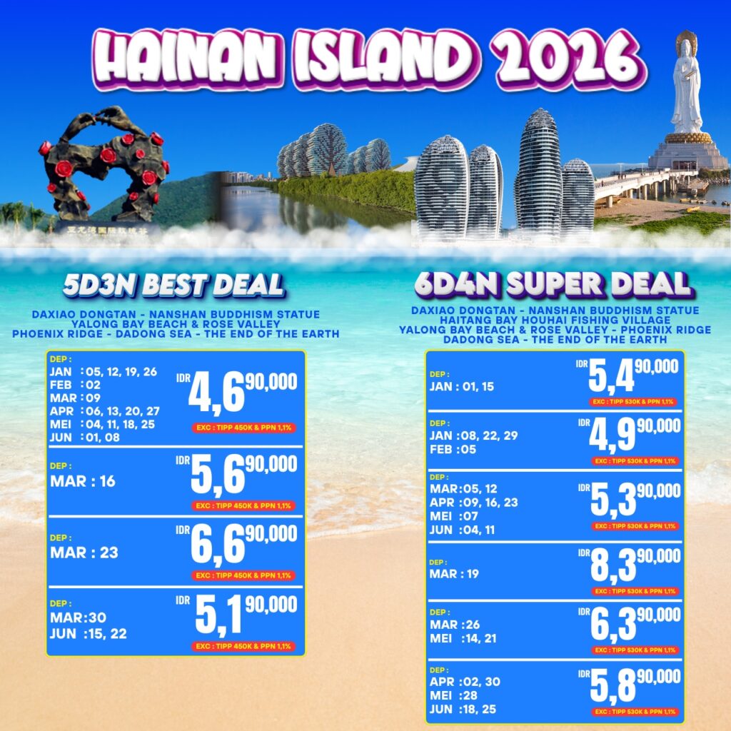 Departure 2026 : 05, 12, 19, 26 Jan | 02 Feb | 09 Mar | 06, 13, 20, 27 Apr | 04, 11, 18, 25 Mei | 01, 08 Jun